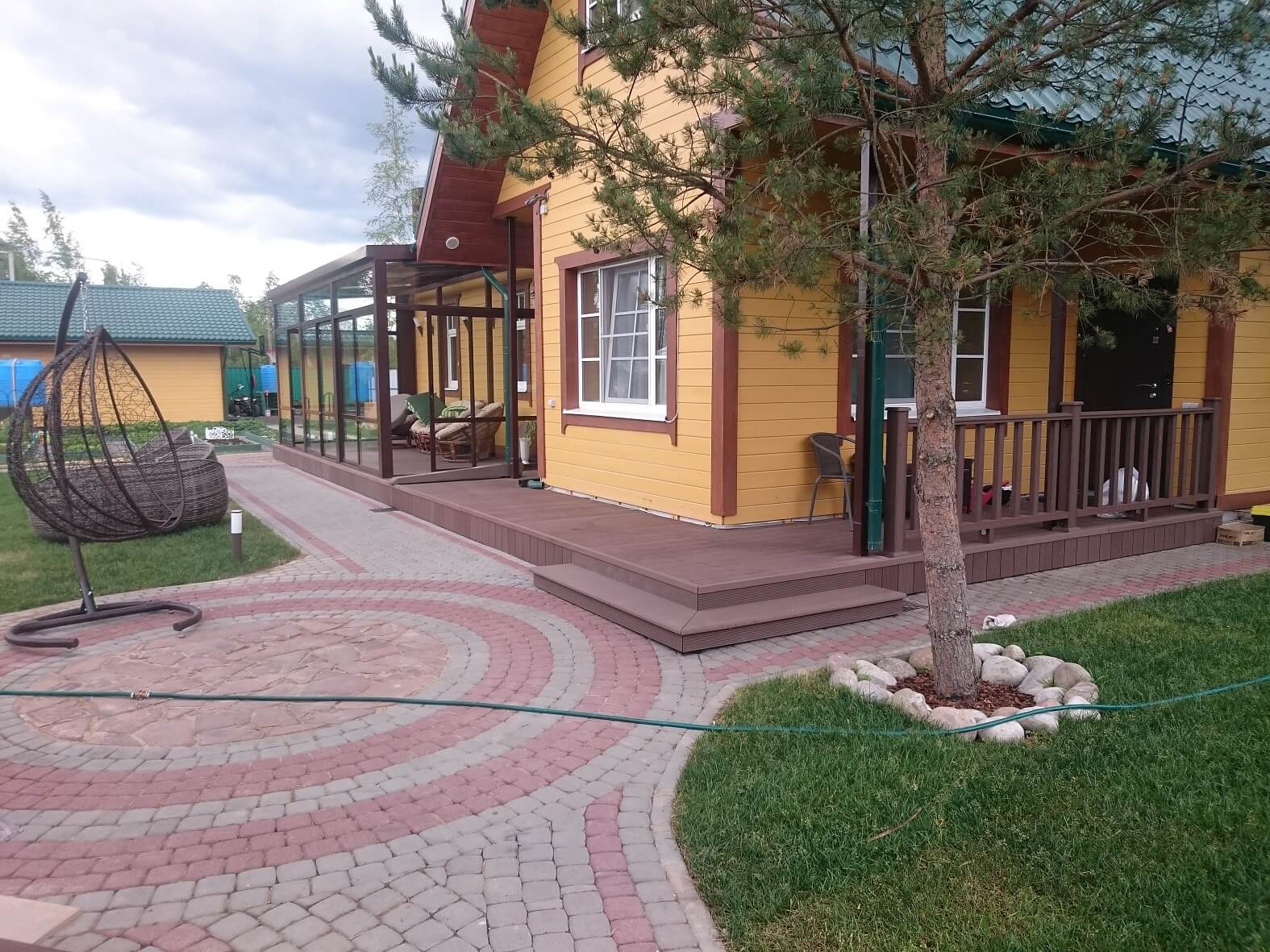 Ленинградская область, посёлок Сусанино. Две террасы, террасная доска FUNK тёмно-коричневый и ограждения ДПК